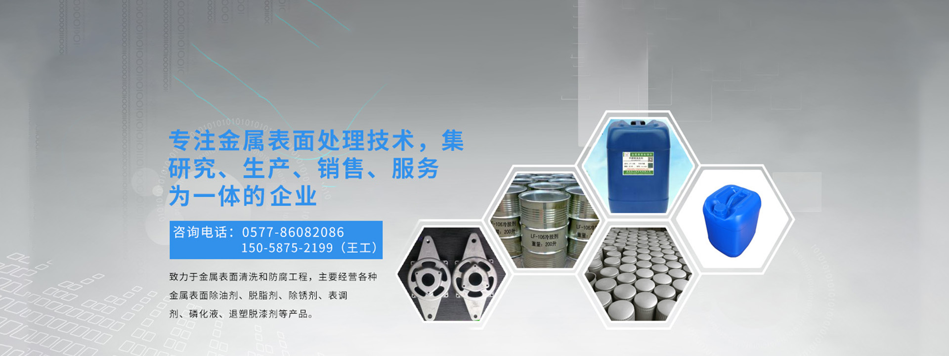 溫州龍飛環(huán)保科技有限公司是金屬表面處理技術(shù)集研究、生產(chǎn)、銷售、服務(wù)為一體的高新科技企業(yè),致力于金屬表面清洗和防腐工程,主要經(jīng)營各種金屬表面除油劑、脫脂劑、除銹劑、表調(diào)劑、磷化液、退塑脫漆劑、除蠟水、防銹水防銹油、封閉劑、鈍化劑、發(fā)黑劑、著色劑、化學(xué)拋光劑、合成乳化劑、水處理劑等金屬表面處理劑,廣泛適用于產(chǎn)品的噴塑、噴漆、噴砂、電泳、電鍍前的表面處理以及表面終處理,現(xiàn)已涉通用機械零部件、汽摩配件、五金及電工工具、電器電腦、潔具閥門、教學(xué)儀器等。